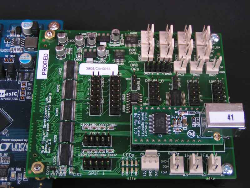 We also have a USB slave interface board based on the FTDI FT245R, this allows USB connection to a PC (or